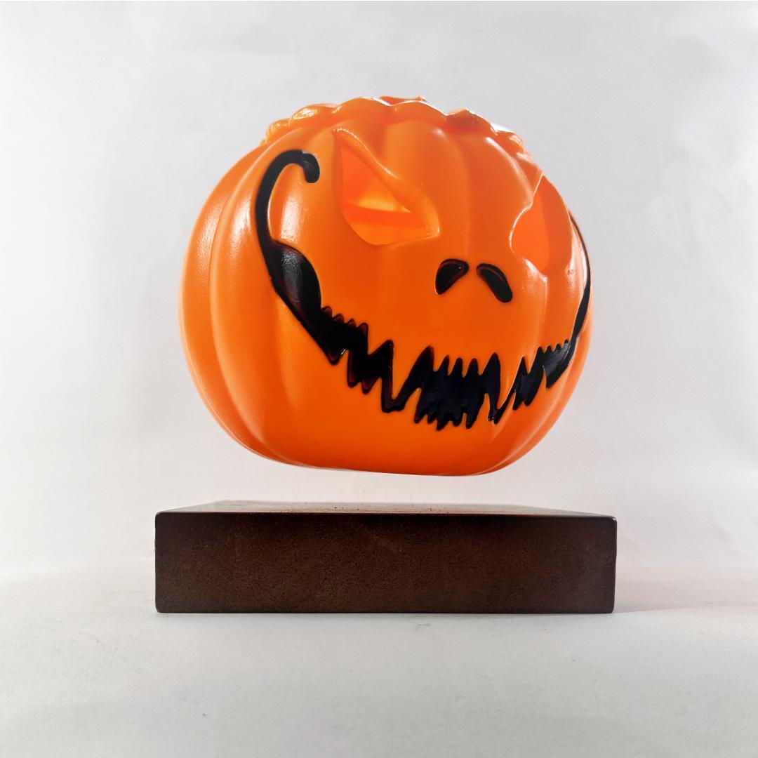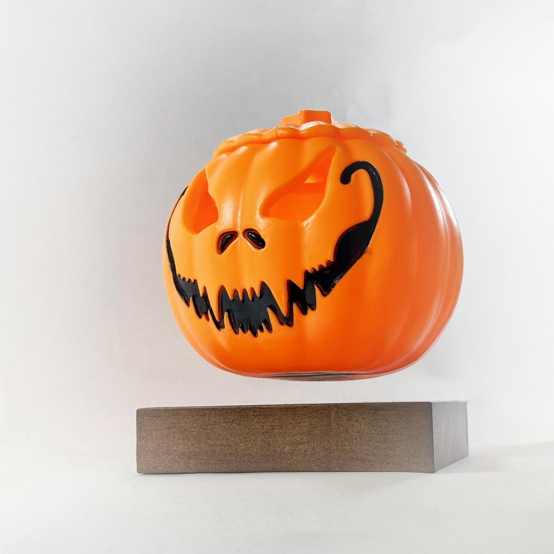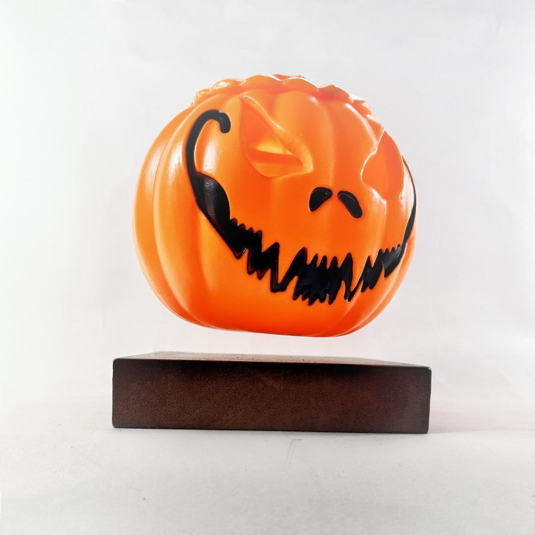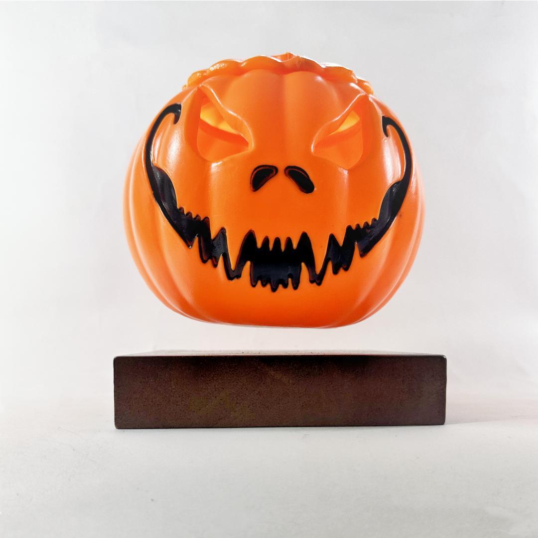 Material : the base made with solid beech wood, electric magnetic engine inside, Jack-O'-Lantern made with ABS plastic.