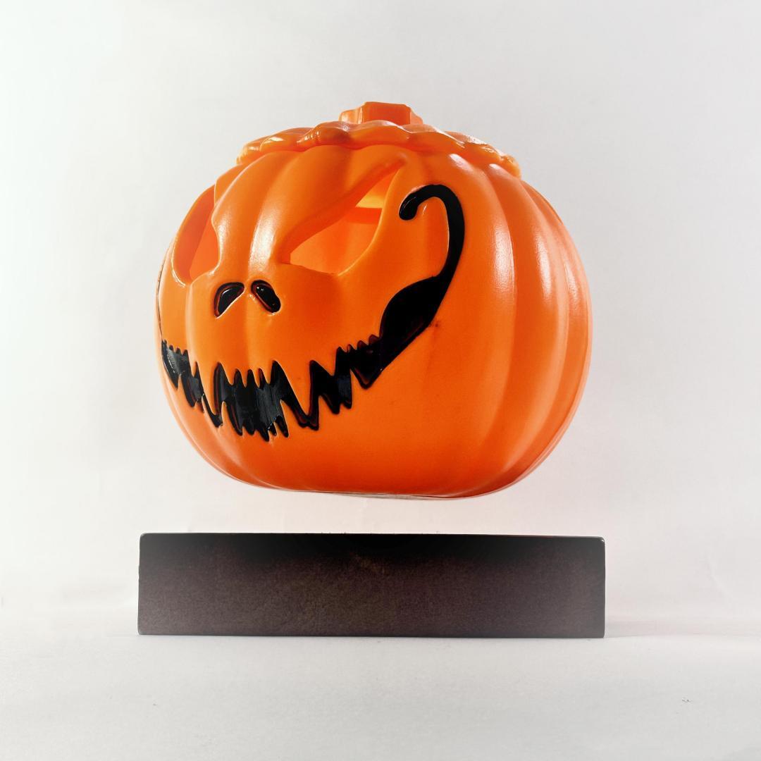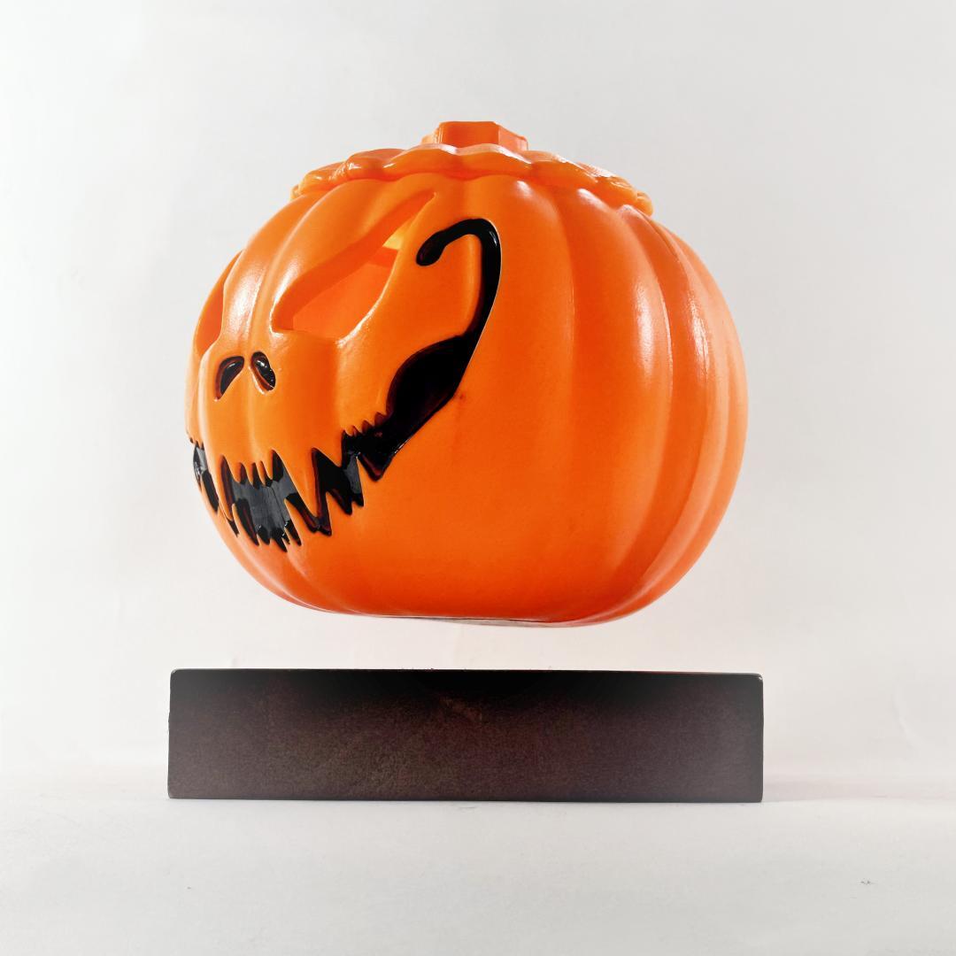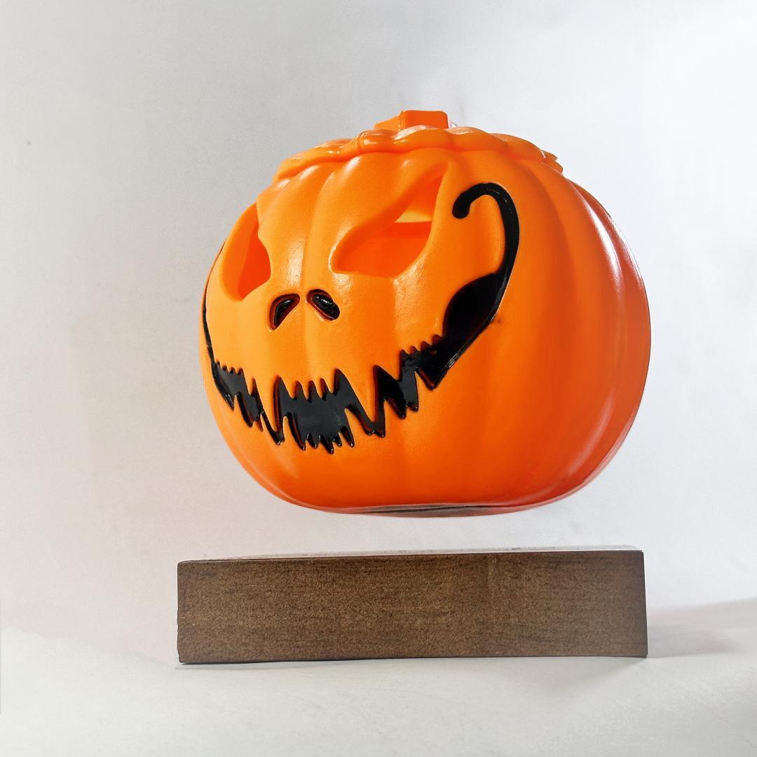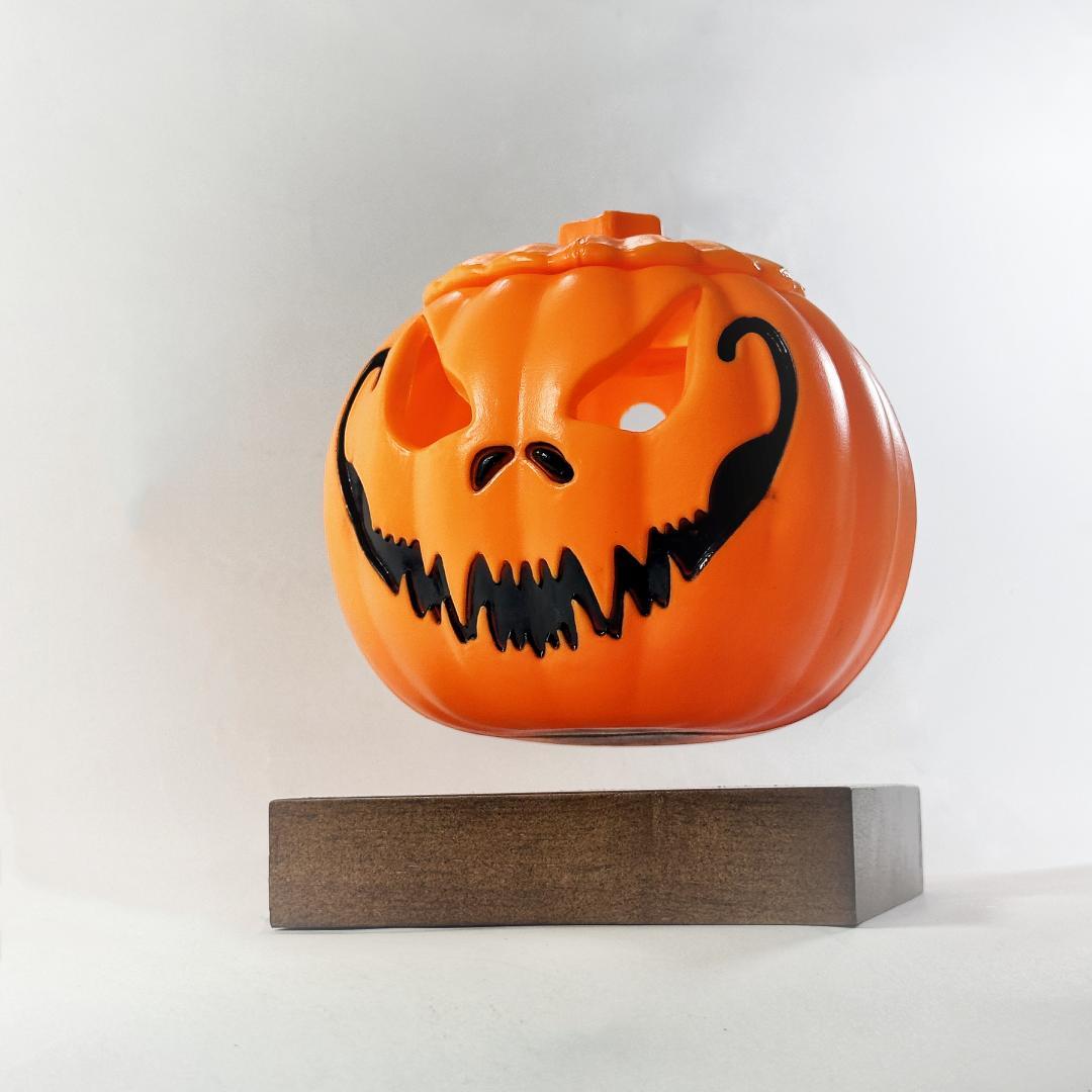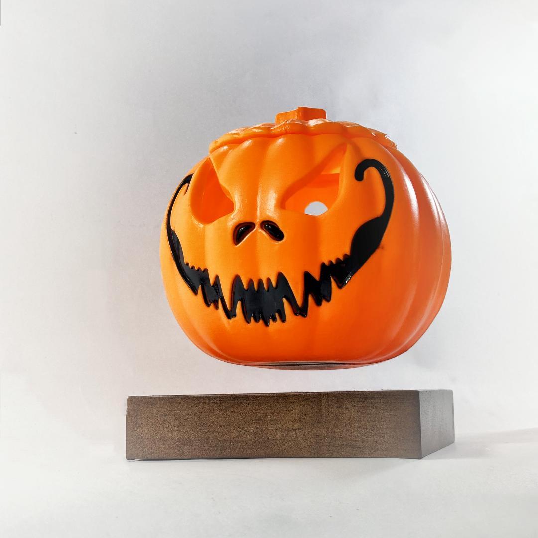 Material : the base made with solid beech wood, electric magnetic engine inside, Jack-O'-Lantern made with ABS plastic.