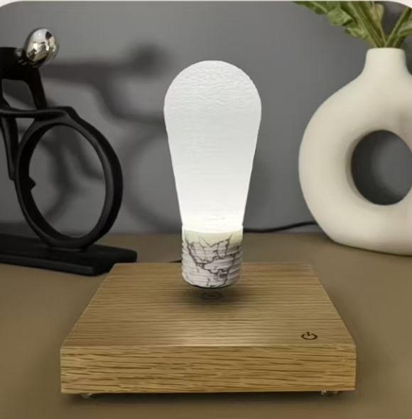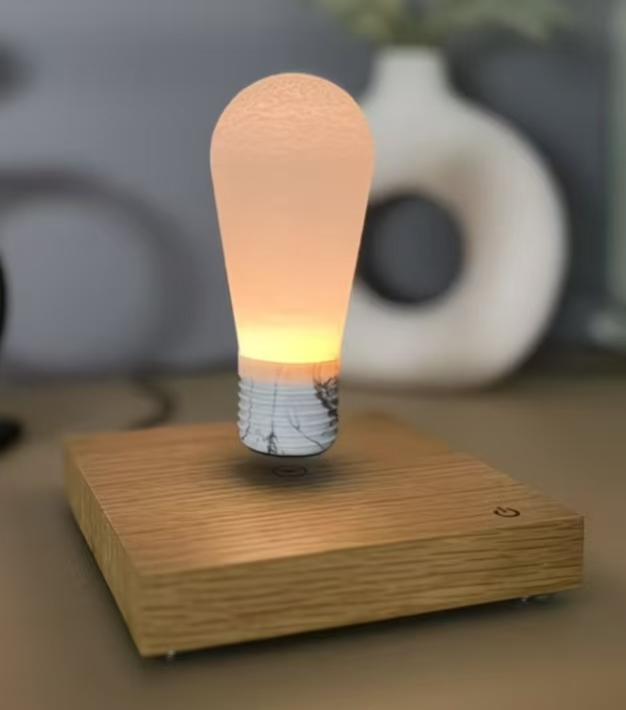 Material: The light bulb is made through 3D printing technology, using PLA plastic as the material. The shell of the base is made of ABS plastic, the device made with neodymium iron boron magnet and electronic elements is in the base .